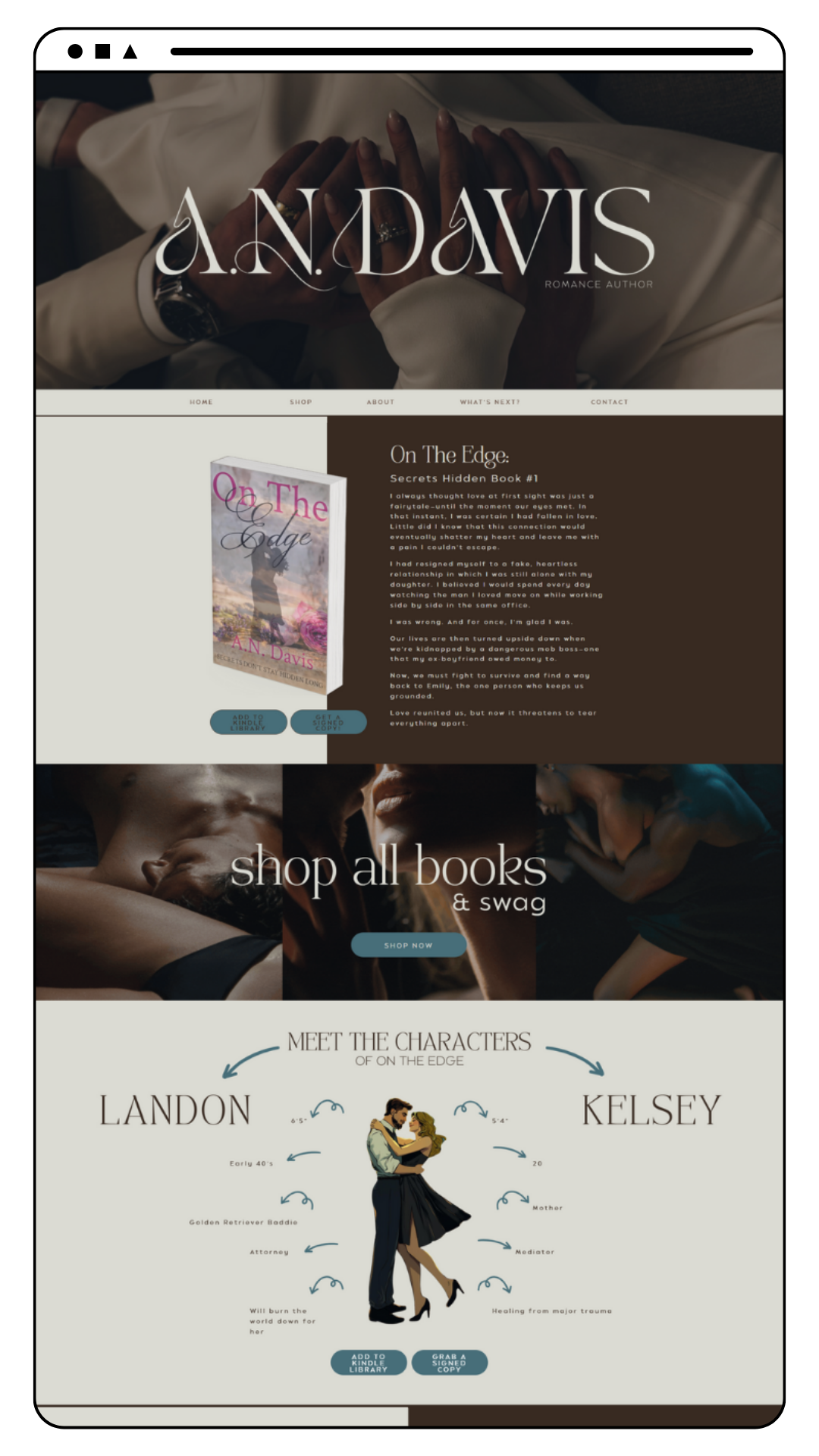 Perfect for authors and romance-adjacent brands who want more than a beautiful website…they want a platform that works as hard as they do.