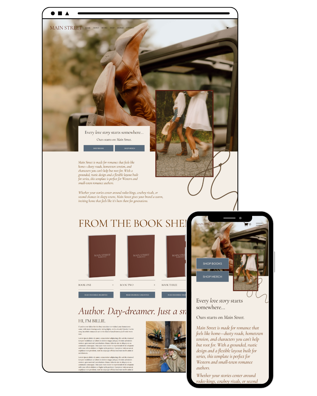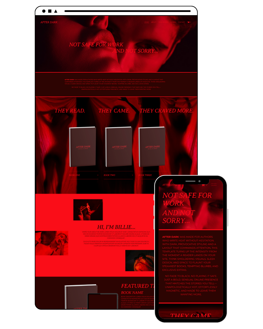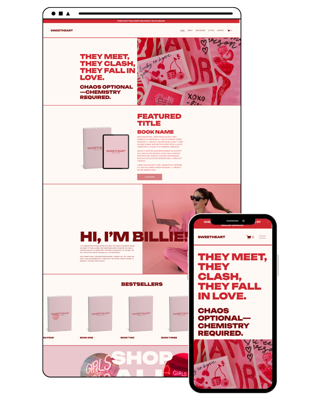 A complete Squarespace 7.1 template, professionally styled and structured for romance authors, with fonts, colors, and layouts curated to capture your unique voice.