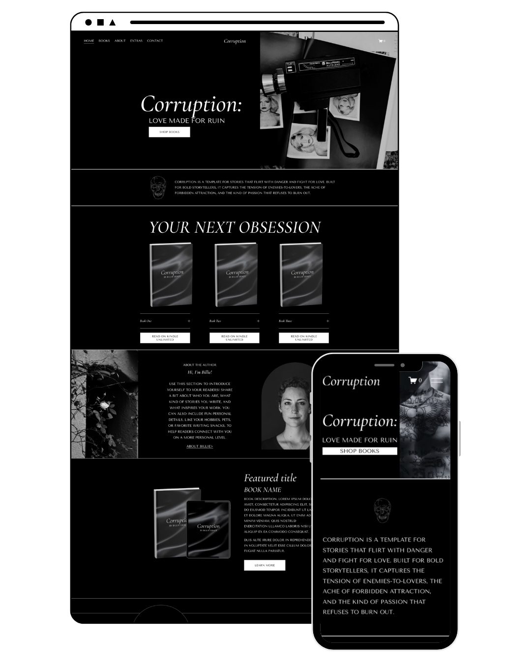 Browse our collection of Squarespace templates made just for romance authors. Each one is designed to be as beautiful, functional, and story-driven as the books you write: no coding or tech skills needed.